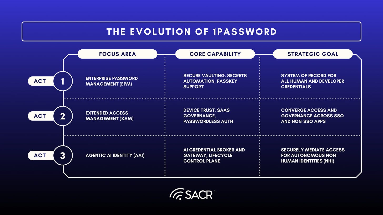 1Password has the opportunity within the identity security layer for machine intelligence, positioning it to disrupt legacy PAM by securing the access requirements of autonomous software agents, a new and highly dynamic class of Non-Human Identities (NHI).