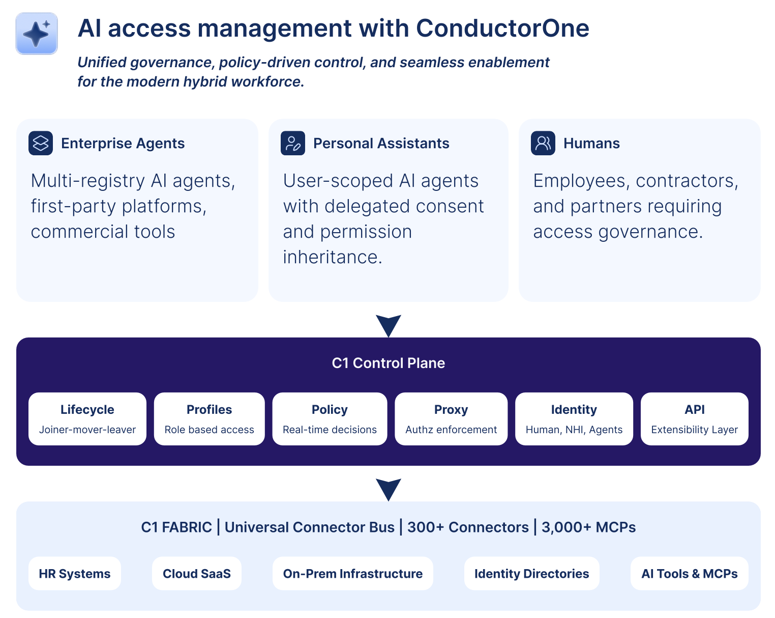 Non-Deterministic Governance: The centralized policy engine enables real-time allow, block, and step-up decisions informed by identity, context, posture, and risk, applying dynamic enforcement actions in direct response to evolving conditions rather than relying solely on static rules.